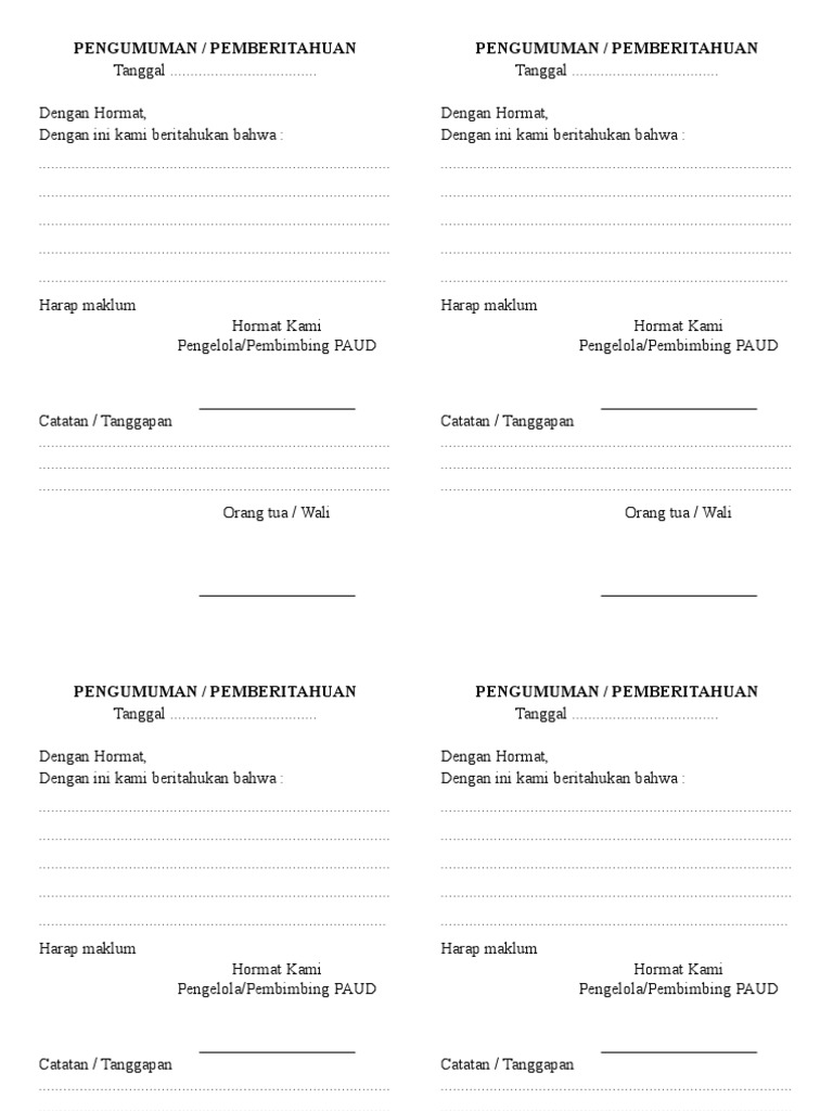 Buku penghubung ini buku yang dibuat dengan format microsoft word (.doc) sehingga dapat dimodifikasi fitur dan kelebihan buku penghubung komunikasi orangtua dengan guru paud Contoh buku penghubung paud/buku komunikasi ortu guru. Berikut penjelasan mamikos tentang contoh dan jenis kata penghubung. Pengertian buku penghubung adalah buku yang dibuat dalam sebuah kerangka niat untuk membangun. Download contoh buku penghubung paud/ buku komunikasi orang tua guru paud.